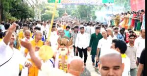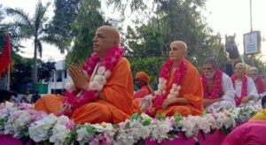 इस्कॉन-उज्जैन द्वारा भगवान जगन्नाथ की 19वीं रथ यात्रा के समापन कार्यक्रम में मुख्यमंत्री डॉ मोहन यादव भी शामिल हुए। इससे पहले मंगल आरती और विधि विधान पूजा के इस्कॉन-उज्जैन द्वारा भगवान जगन्नाथ की 19वीं रथ यात्रा के समापन में मुख्यमंत्री डॉ मोहन यादव भी शामिल हुए भगवान जगन्नाथ को नंदी घोष रथ, देवी सुभद्रा को दर्पदलन और बलभद्र को तालध्वज रथ पर विराजित किया गया। यात्रा में सबसे पहले बलराम उसके बाद सुभद्रा और फिर भगवान जगन्नाथ का रथ चला है। इस्कॉन की रथ यात्रा में शामिल रथों की ऊंचाई 21 से 25 फीट तक है। नगर के प्रमुख मार्गों पर सत्कार मंच, सांस्कृतिक प्रस्तुतियां अहीर, गोंड व कोरकू जनजातीय नृत्य करते चल रहे हैं। भव्य रथ यात्रा में झांकी, घोड़े, हाथी, बैलगाड़ी और नृत्य मंडलियां आकर्षण का केंद्र रहे। महिला, पुरुष, बच्चे सहित सभी भक्तों ने भगवान का रथ खींचा। रथ के आगे सोने की झाडू से सफाई की जा रही है। यात्रा में ड्रोन से पुष्प वर्षा की गई।