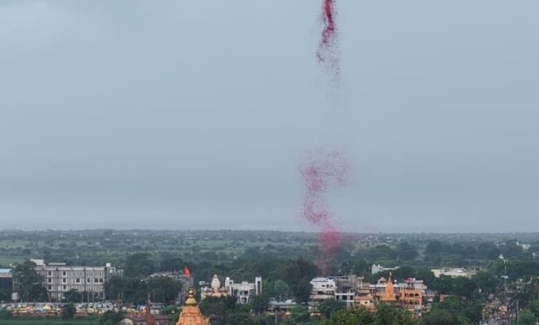 हेलिकॉप्टर से रामघाट और ड्रोन से पुष्प वर्षा