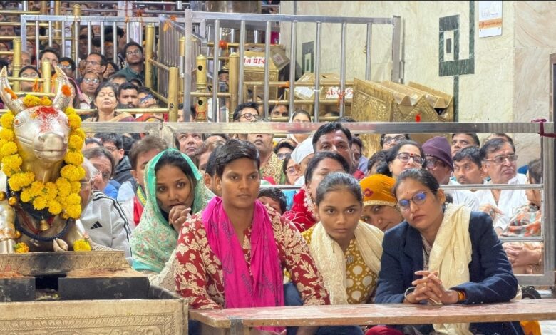 उज्जैन, दिनांक 9 नवंबर 2025। महिला क्रिकेट विश्व कप विजेता भारतीय क्रिकेट टीम की सदस्य सुश्री दीप्ति शर्मा आज प्रातःकालीन भस्म आरती में शामिल होकर भगवान श्री महाकालेश्वर जी के दर्शन लाभ लिए । दर्शन उपरांत मंदिर समिति की ओर से उप प्रशासक एस. एन. सोनी द्वारा स्वागत एवं सत्कार किया गया।