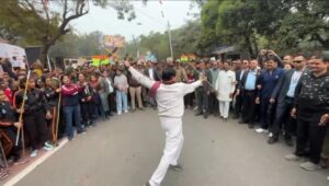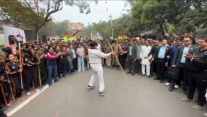 मुख्यमंत्री डॉ. मोहन यादव ने कोठी रोड पर सम्राट विक्रमादित्य विश्व विद्यालय के मंच पर छोटी-छोटी बालिकाओं द्वारा भारत माता की आरती की प्रस्तुति की सराहना करते हुए बच्चों के बीच भगवा ध्वज फहराया। एक मंच पर मुख्यमंत्री ने ड्रम बजाकर उत्साह जताया। मुख्यमंत्री डॉ. यादव ने कुश्ती महासंघ के मंच पर पहुंचकर गदा लहराई। इस दौरान पहलवानी करने वाले बच्चों का उत्साहवर्धन किया।