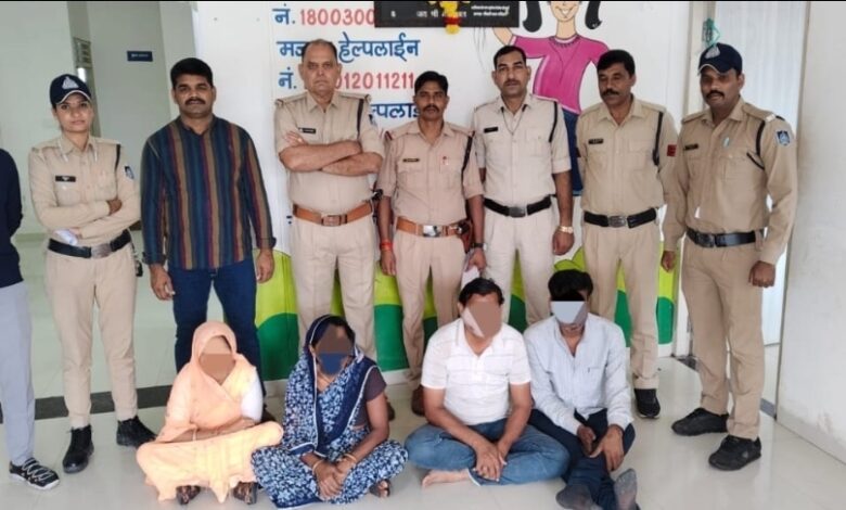 नाम आरोपी: 1. रामचन्द्र पिता शंकरलाल धाकड उम्र 45 वर्ष निवासी सिविल हॉस्पिटल के पीछे खाचरौद 2. जस्सु उर्फ राजु पिता मांगीलाल बागरी उम्र 40 वर्ष निवासी ग्राम हतईपालकी नागदा 3. विष्णुबाई पति रामचन्द्र धाकड उम्र 42 वर्ष निवासी सिविल हास्पिटल के पीछे खाचरौद 4. पुजा उर्फ नेहा पति विनोद मालवीय उम्र 27 साल निवासी 64 ब्लॉक नागदा