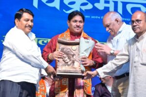 उज्जैन। उज्जैन में महाराजा विक्रमादित्य शोध पीठ एवं संस्कृति विभाग, मध्य प्रदेश शासन के तत्वावधान में आयोजित ‘विक्रम उत्सव 2026’ के अंतर्गत शनिवार को शहर के टॉवर चौक पर भव्य अखिल भारतीय कवि सम्मेलन का आयोजन किया गया। कार्यक्रम का शुभारंभ शोधपीठ के निदेशक श्रीराम तिवारी तथा सम्राट विक्रमादित्य विश्वविद्यालय, उज्जैन के वरिष्ठ कार्यपरिषद सदस्य श्री राजेश कुशवाह ने महाराजा विक्रमादित्य के चित्र पर माल्यार्पण कर किया। कवि सम्मेलन के सूत्रधार (संचालक) कवि दिनेश दिग्गज रहे।